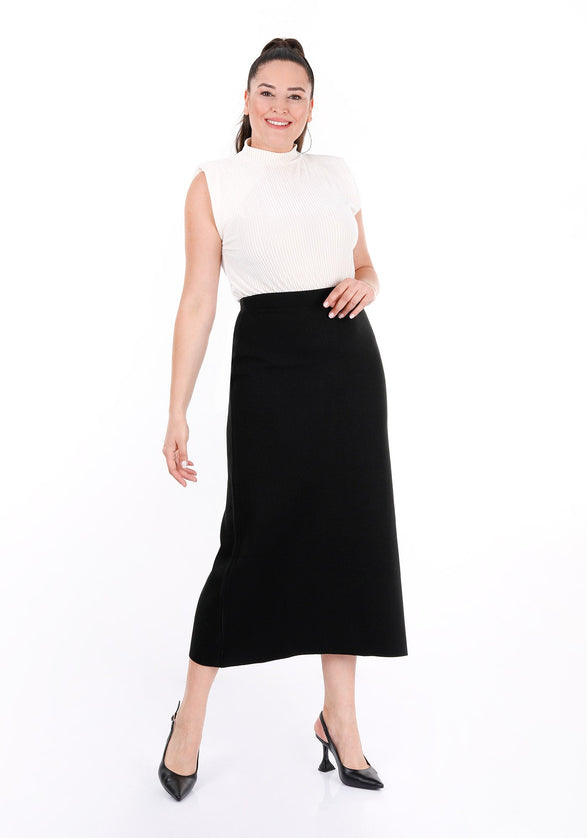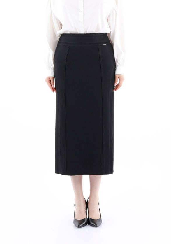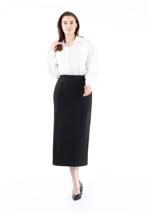 Black Midi Pencil Skirt - Elegant Office Wear - G-Line