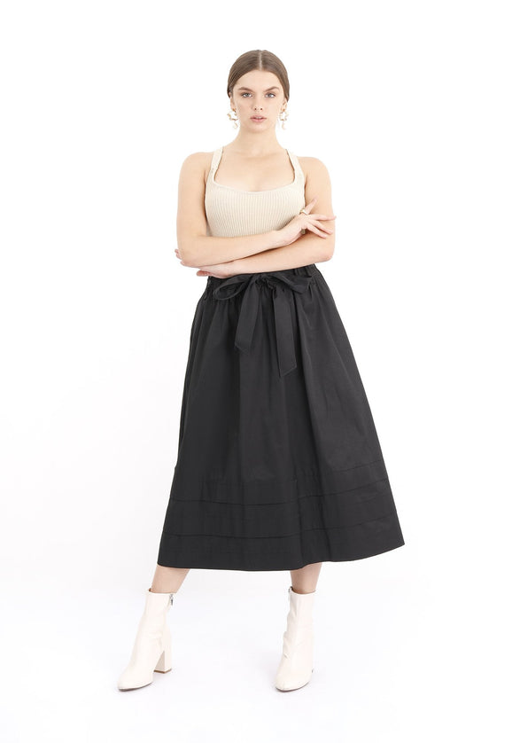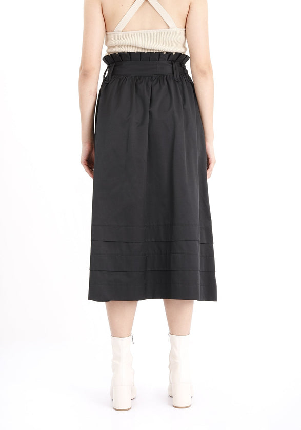 Black Paper Bag Belted Flare Skirt - G-Line