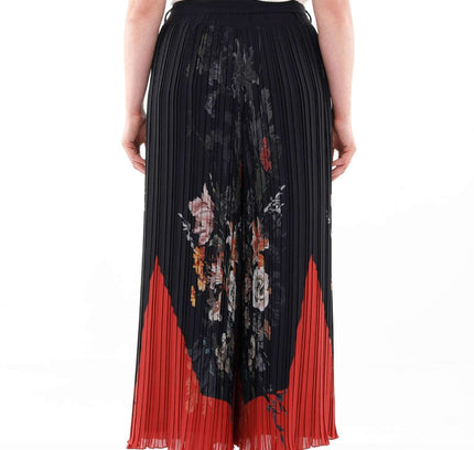 Get ready to turn heads with the G-Line Oversized Plise Black-Red Chiffon Palazzo Floral Pattern Accordion Pleated with Belt.