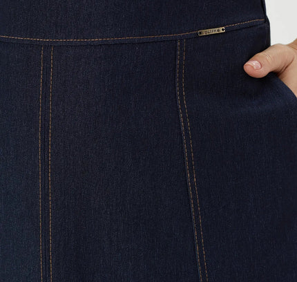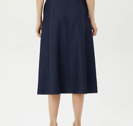 G-Line Below the Knee - Denim Midi Skirt with Boho A-Line Design