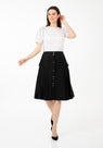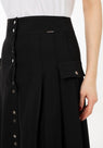 The Guzella Women's Pleated Button-Front Midi Skirt is designed to offer a feminine and modern look. The A-line cut accentuates the feminine curves, while the pleated details add movement and style. The visible pockets on the front two sides also stand out as a stylish and practical detail. The button-front design makes it easy to wear and remove, while the skirt's length and lining offer comfort.