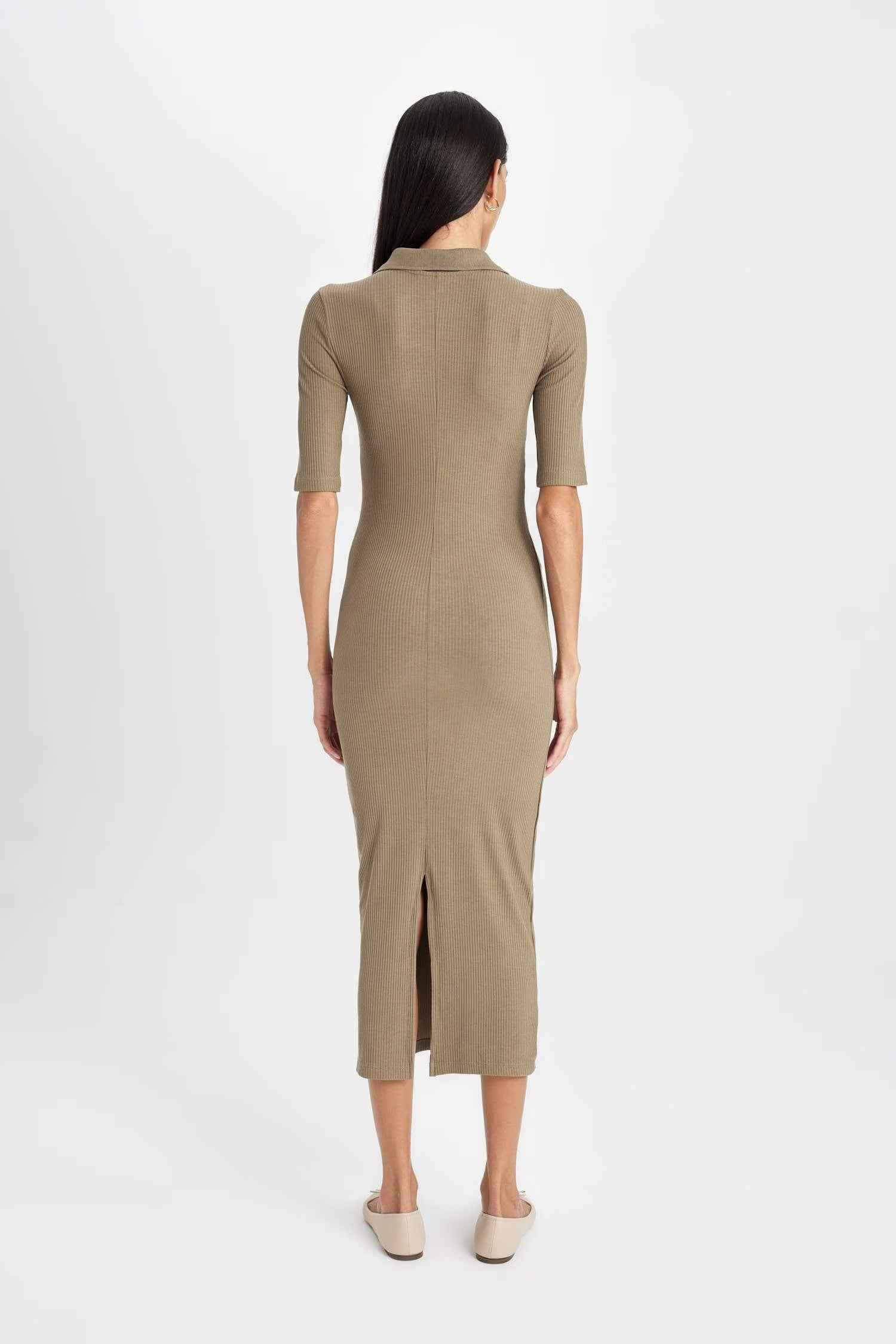 Bodycon Polo Neck Corduroy Half Sleeve Maxi Dress