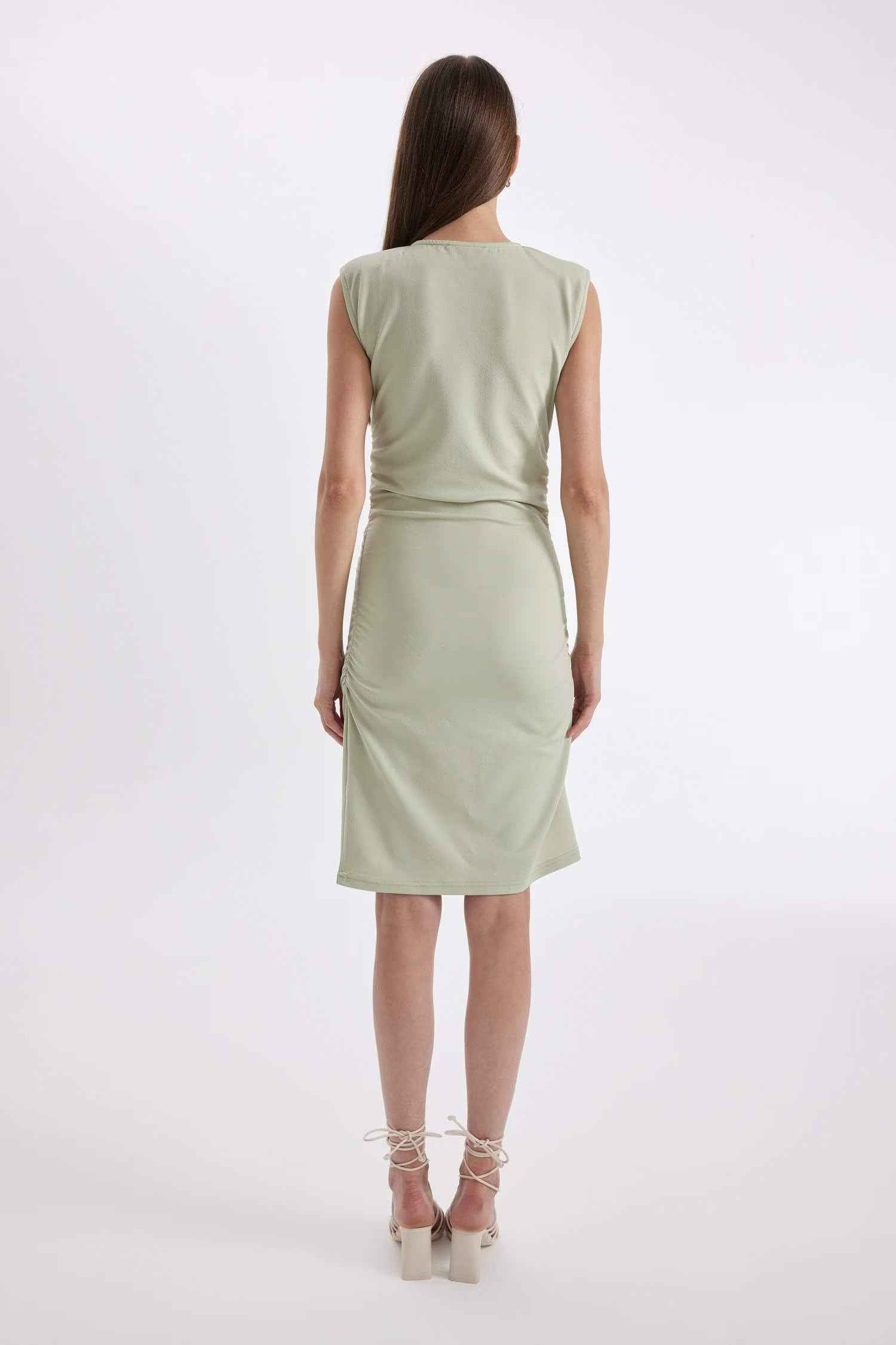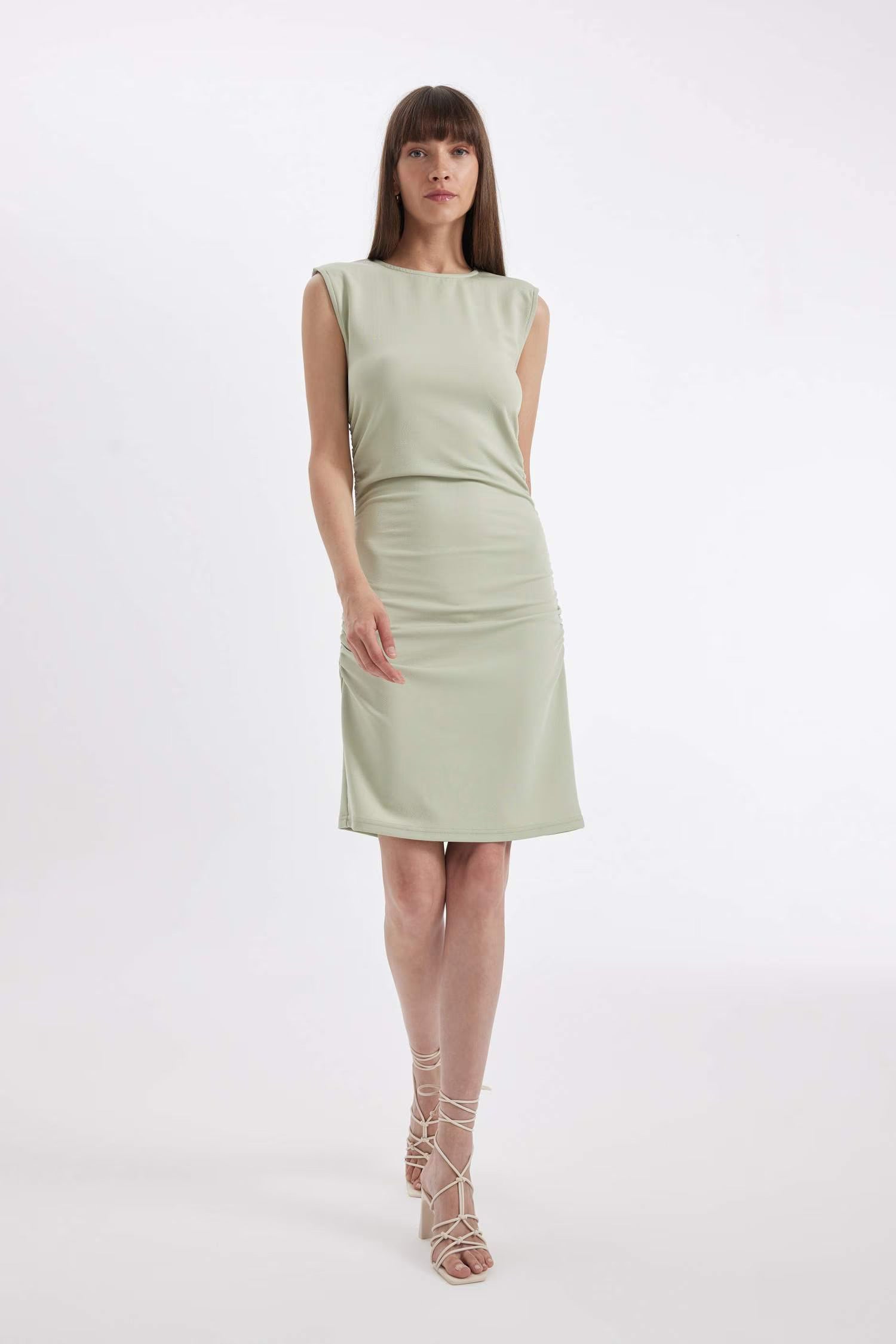 Bodycon Round Neck Crepe Sleeveless Mini Dress