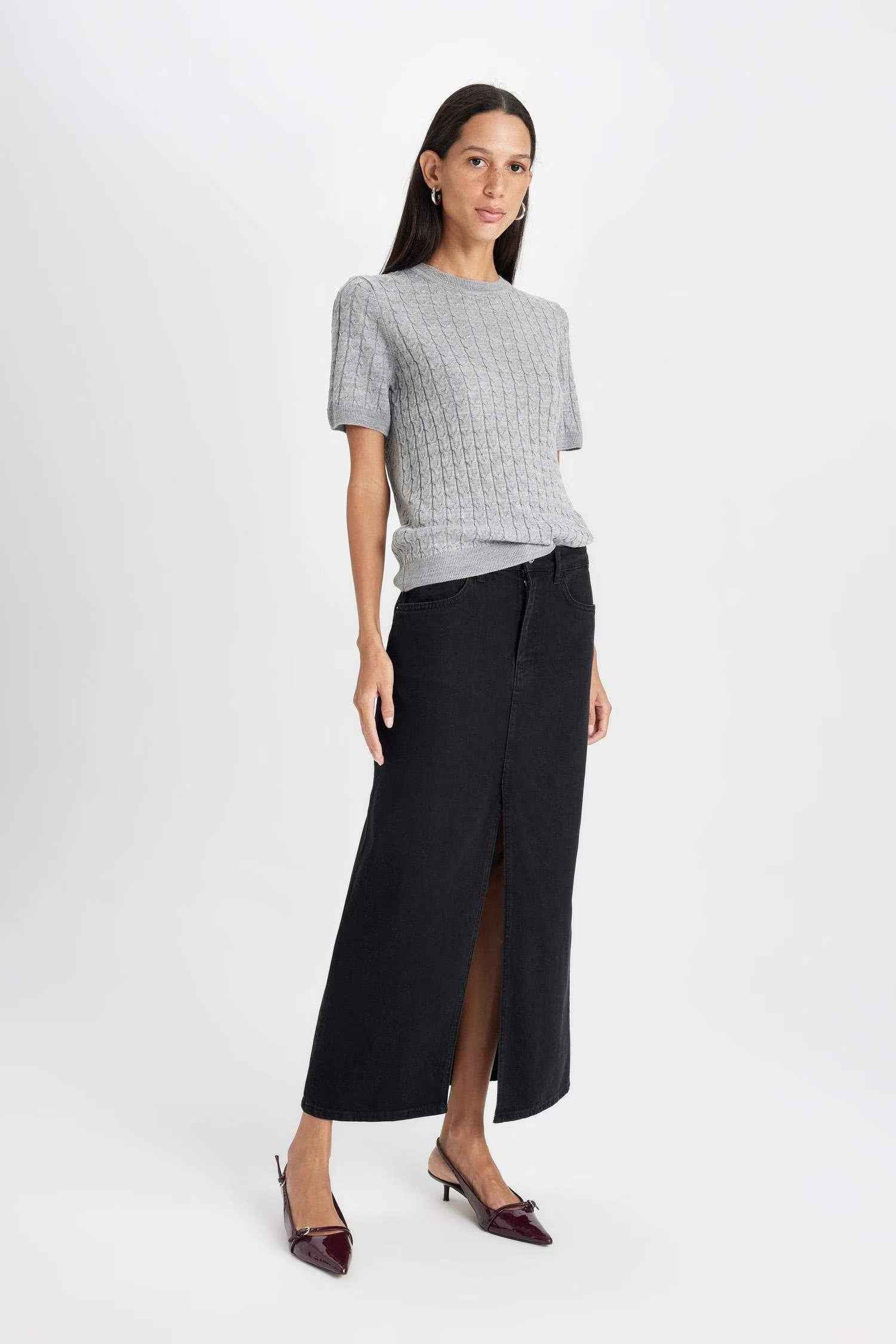 Long Fit Denim Skirt
