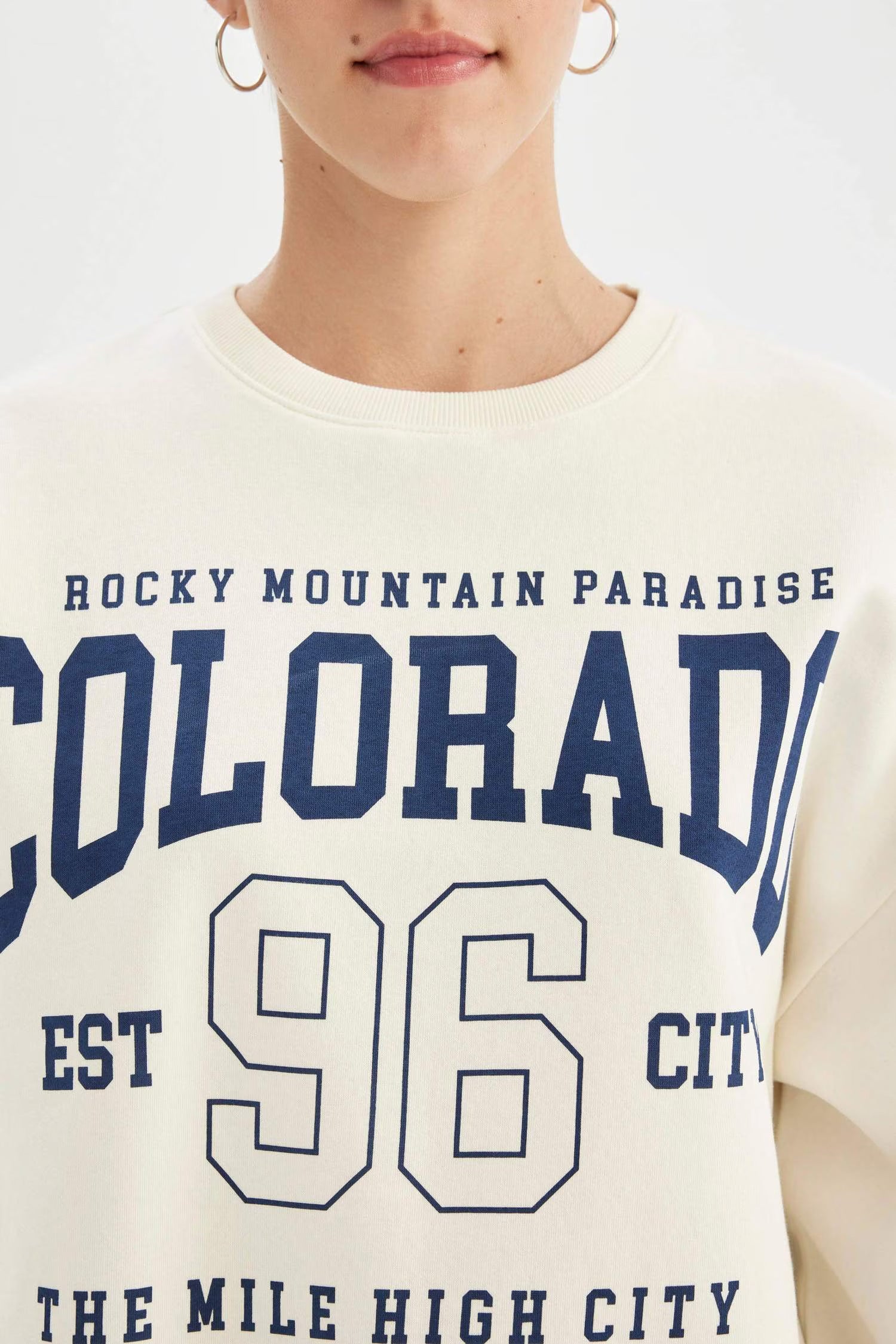Loose Fit Crew Neck Printed Thick Fabric Sweatshirt