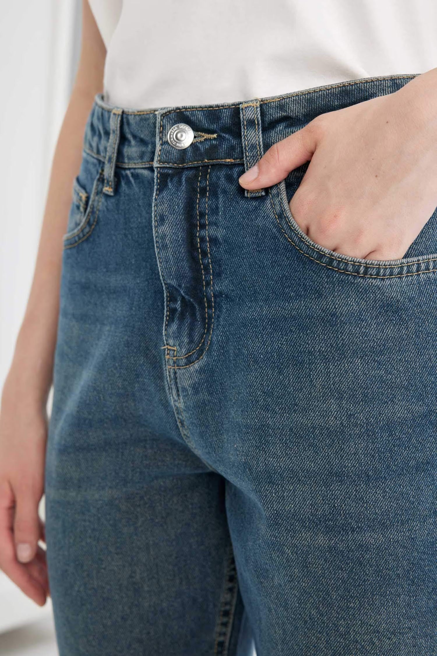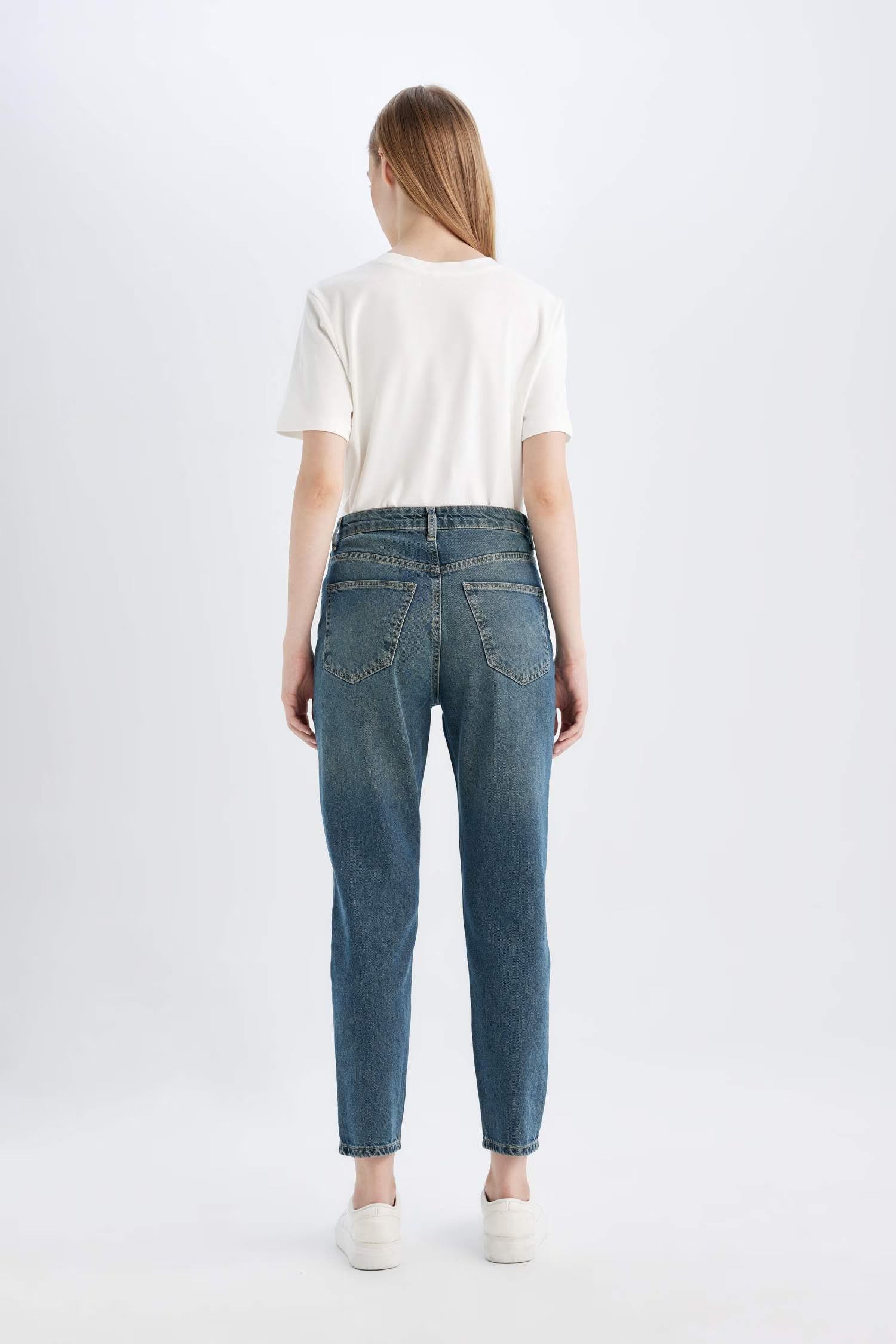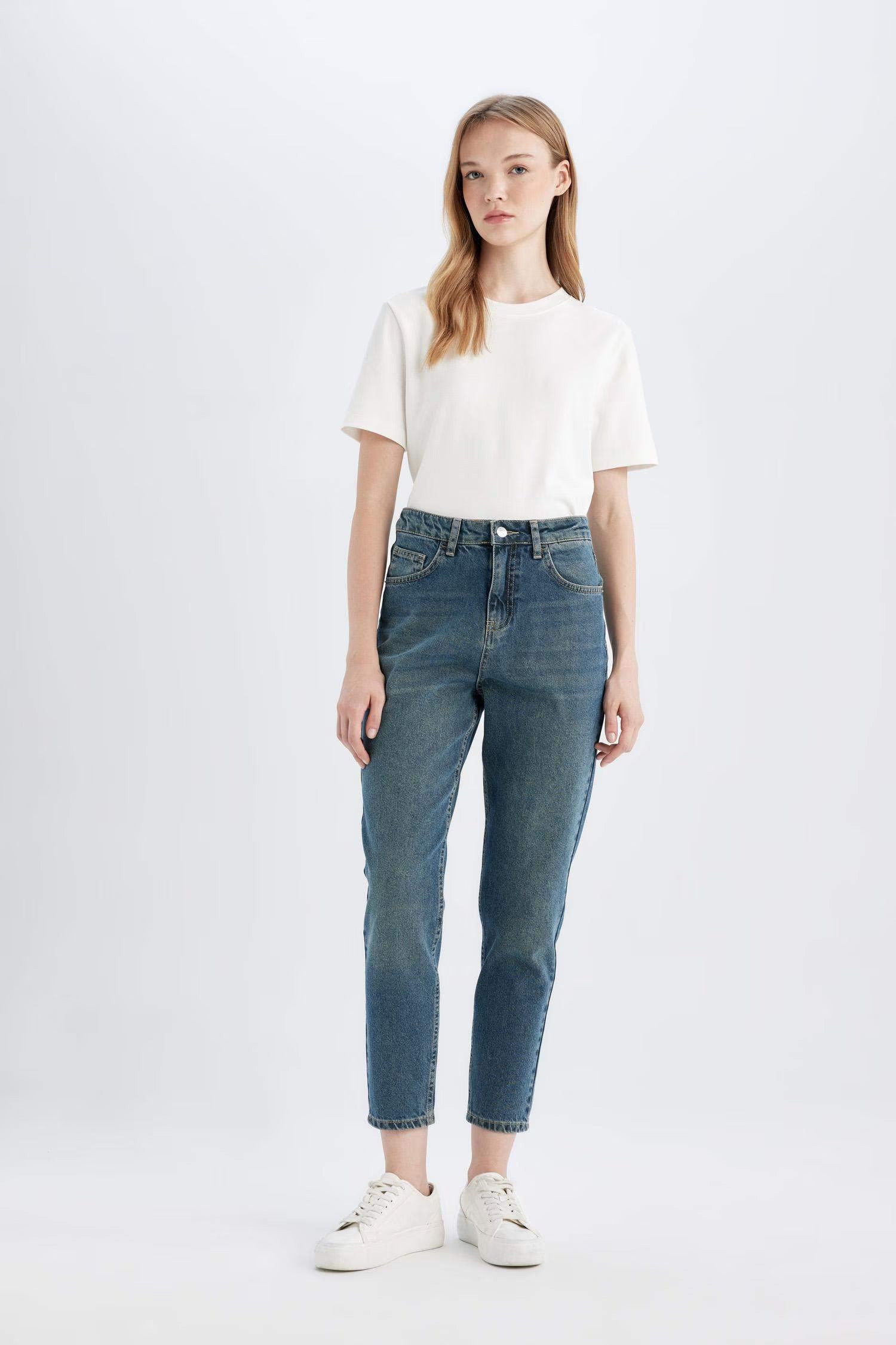 Mom Fit High Waist Skinny Leg Washed Jeans