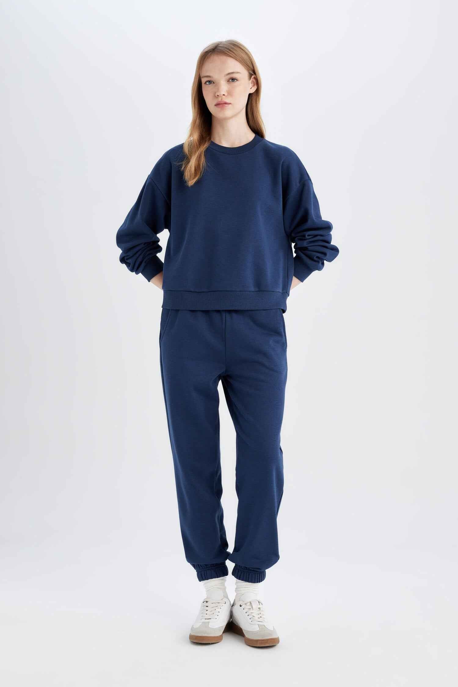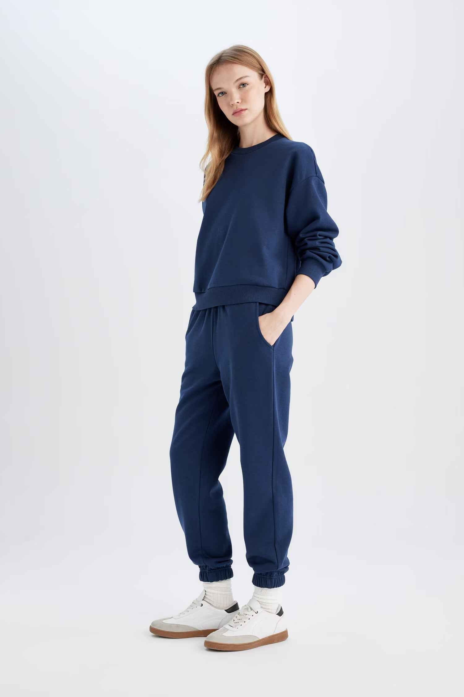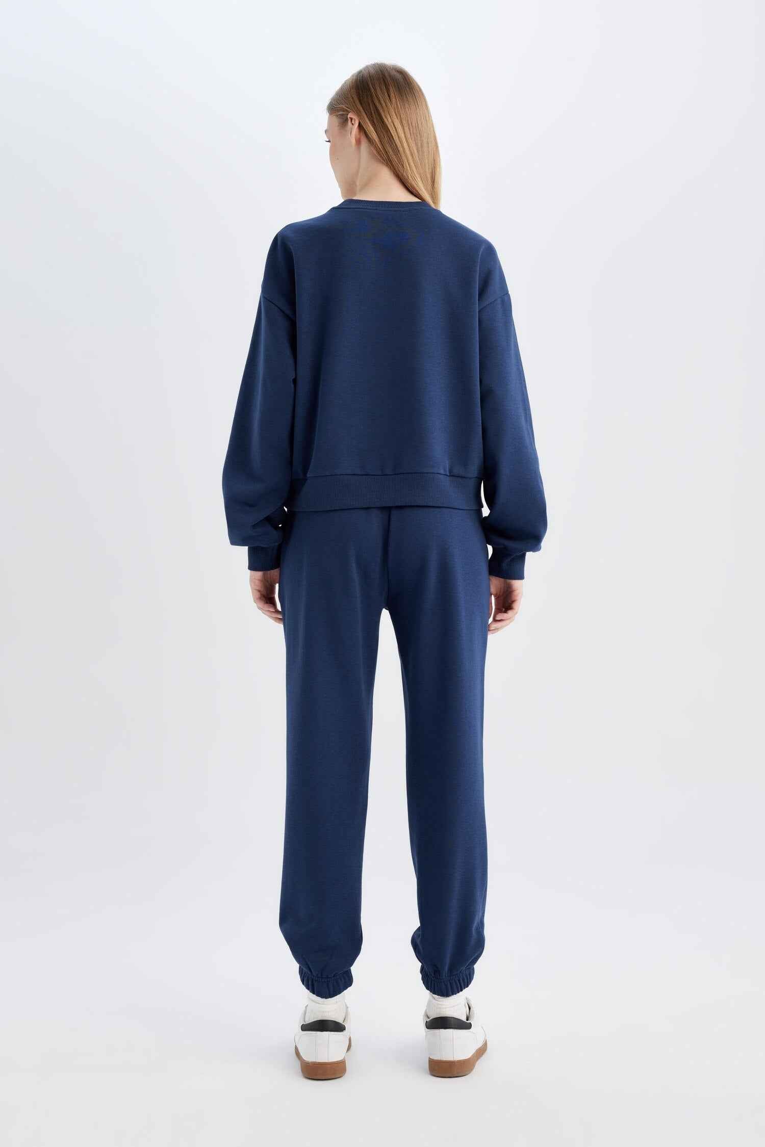 Navy Blue Regular Fit Normal Fit Basic Thick Fleece Inside Tracksuit Set