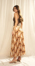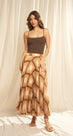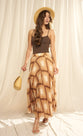 G-Line Elastic Waist, Patterned, Multi-Colored Pleated Cupric Style Skirt Ankle Length