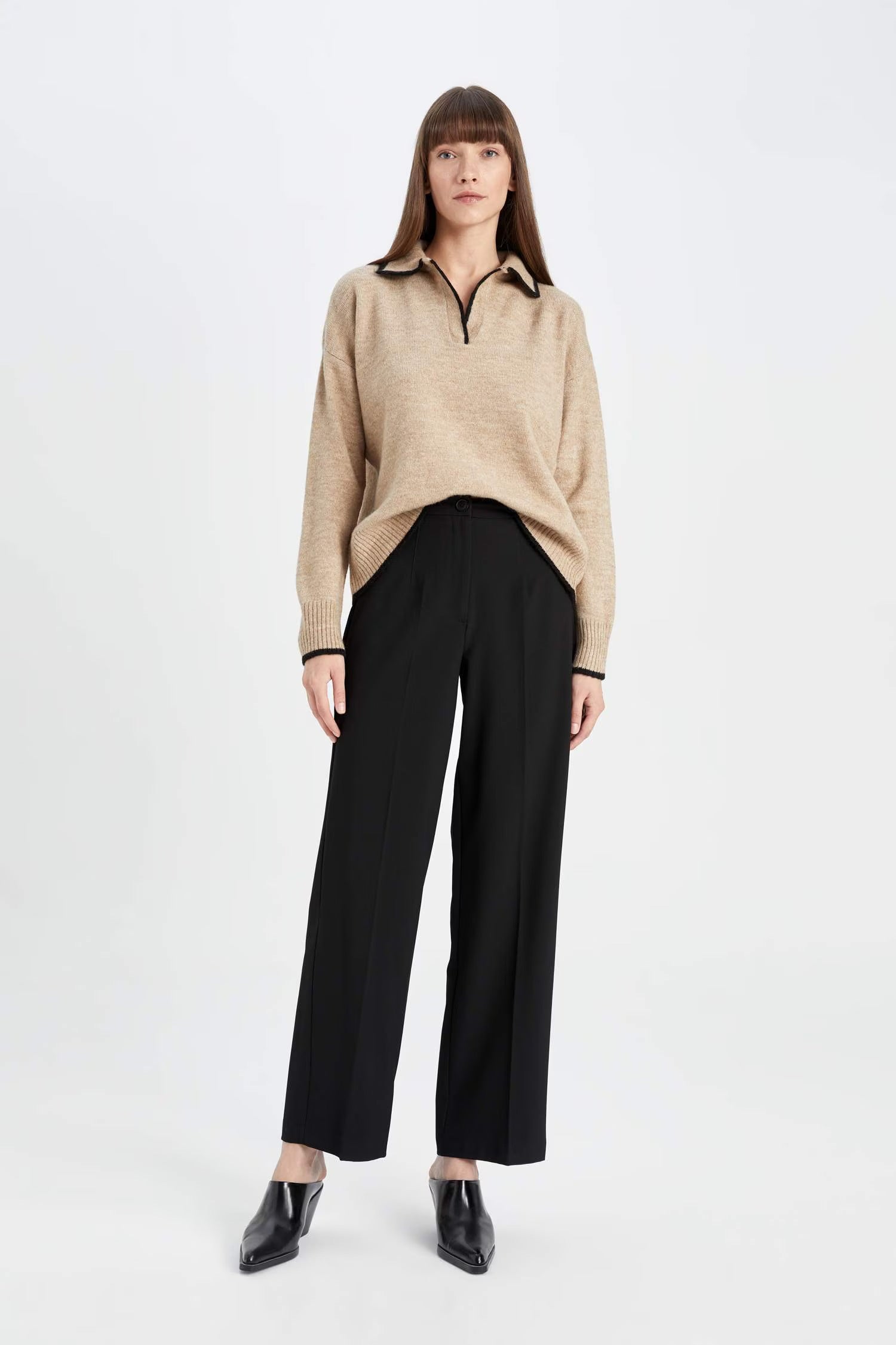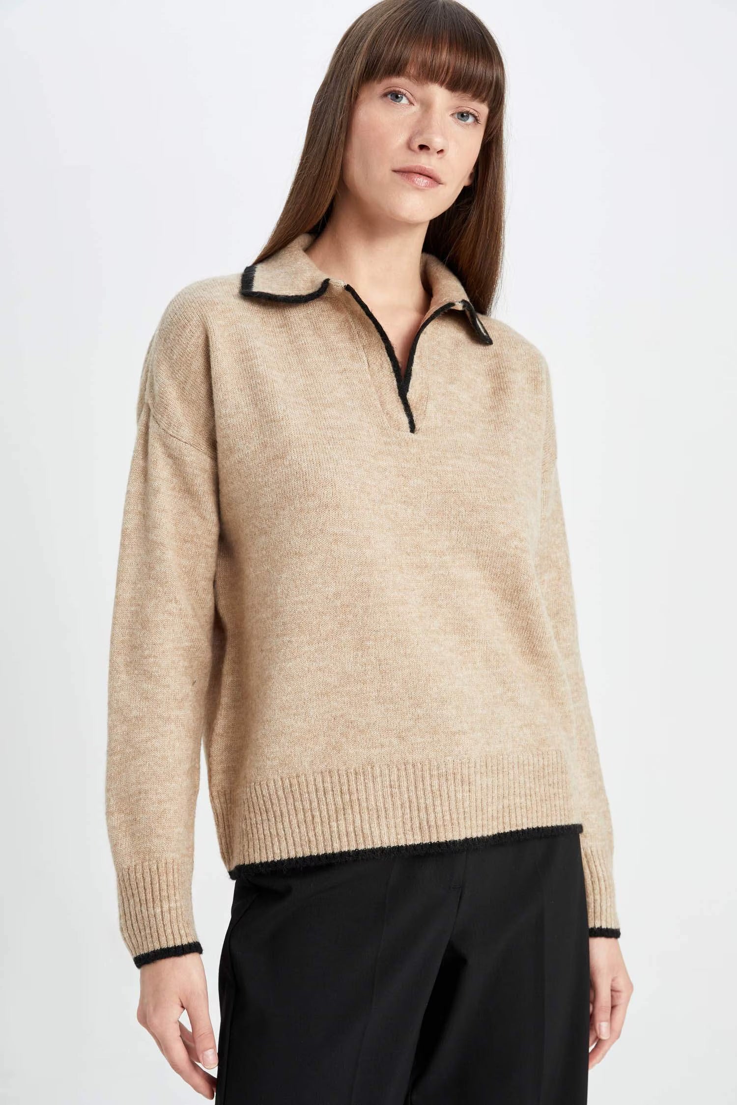 Regular Fit Soft Texture Polo Neck Knit Pullover
