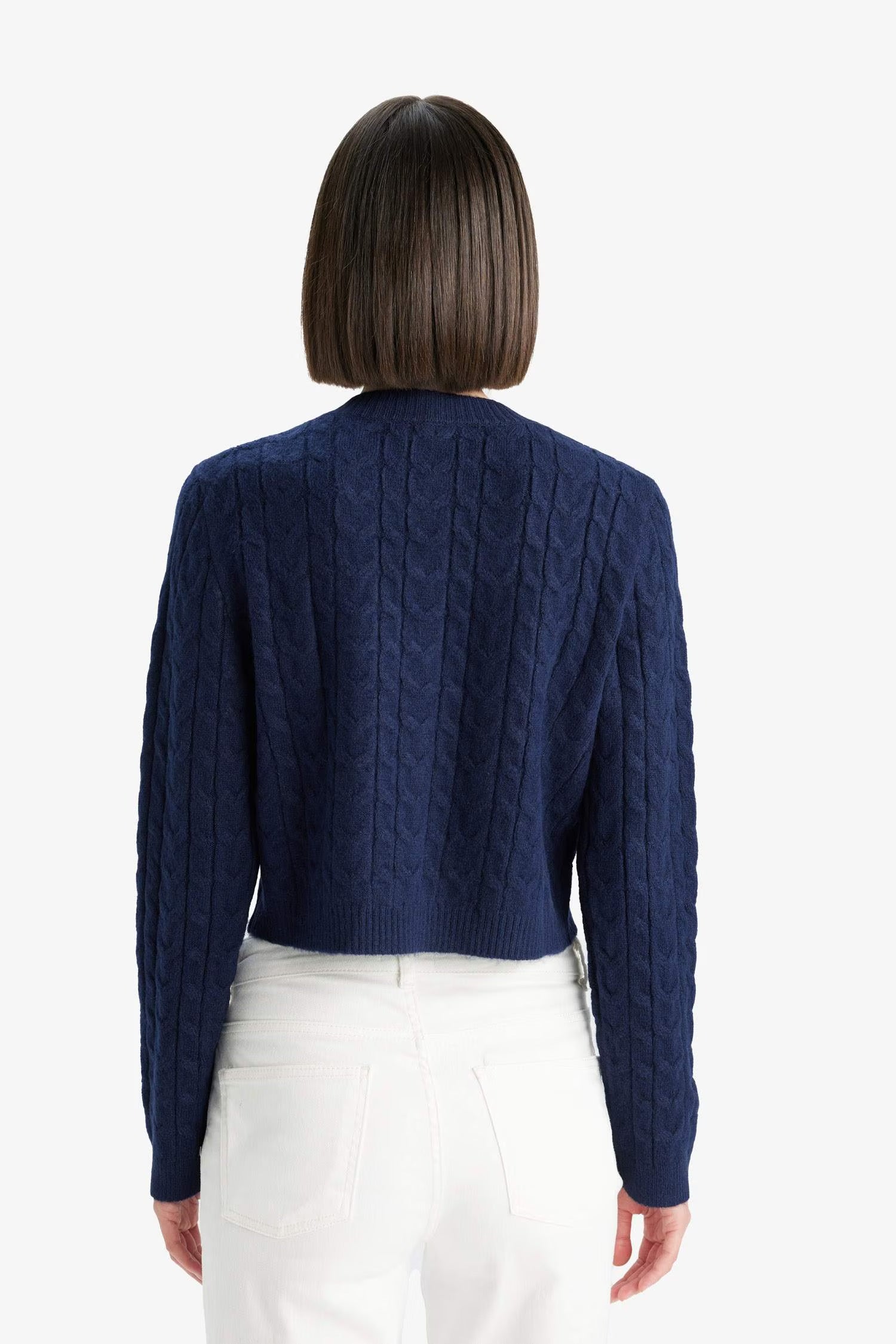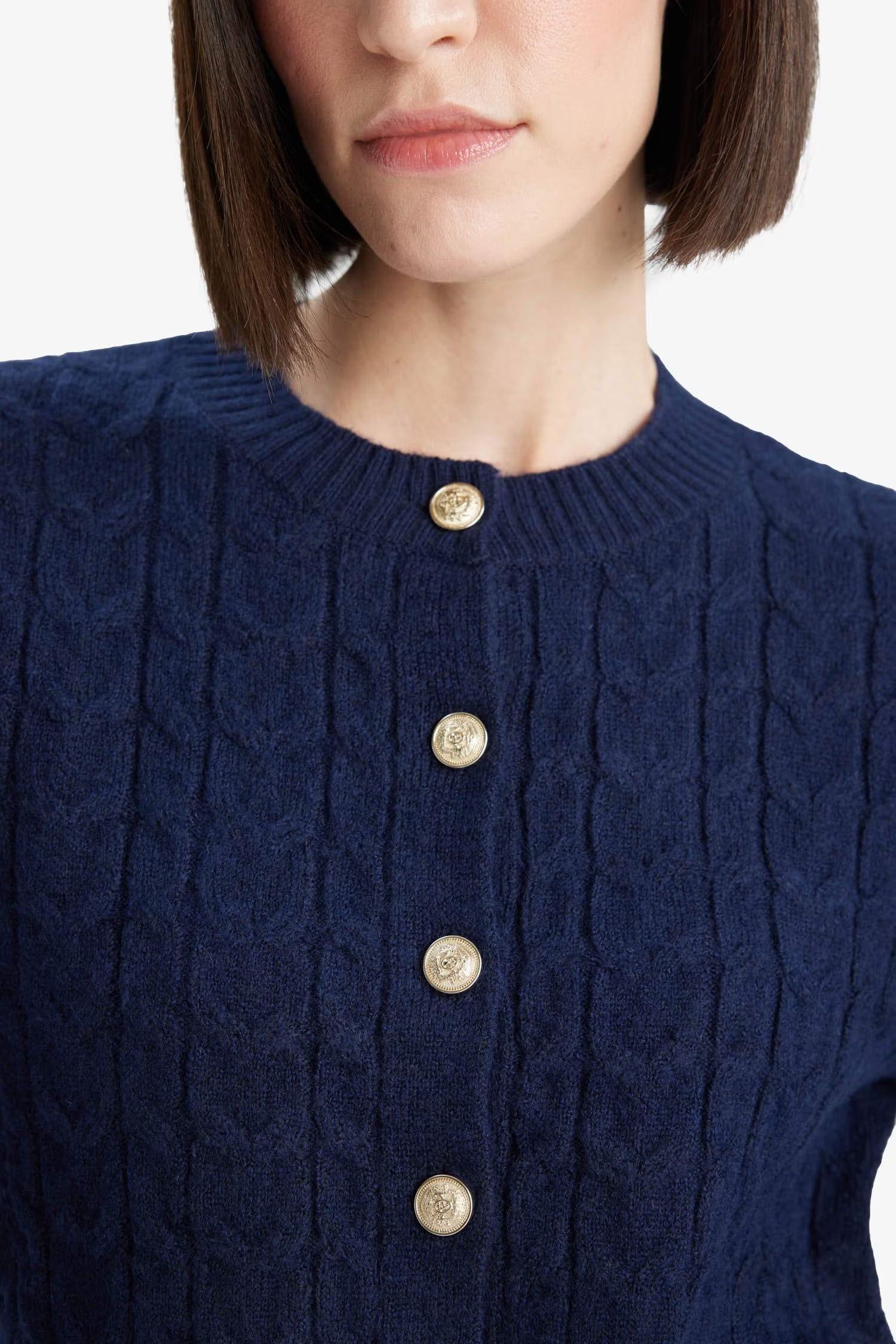 Regular Fit Crew Neck Knitted Buttoned Knitwear Cardigan