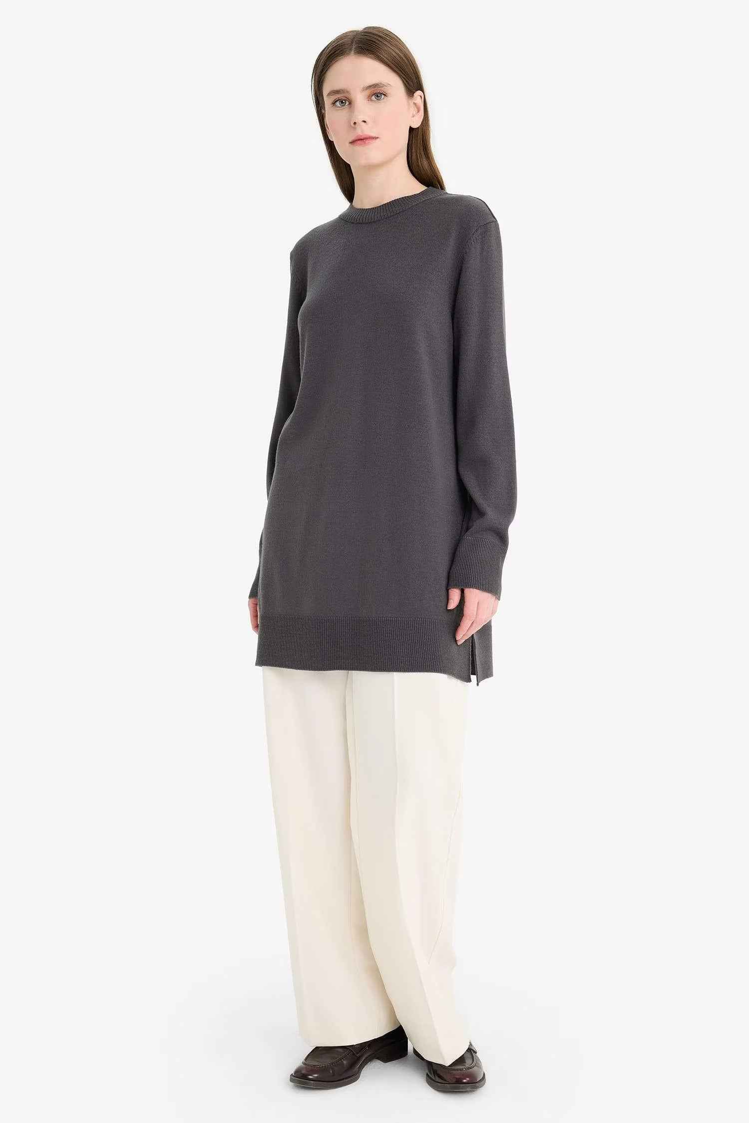 Regular Fit Crew Neck Side Slit Longline Tunic