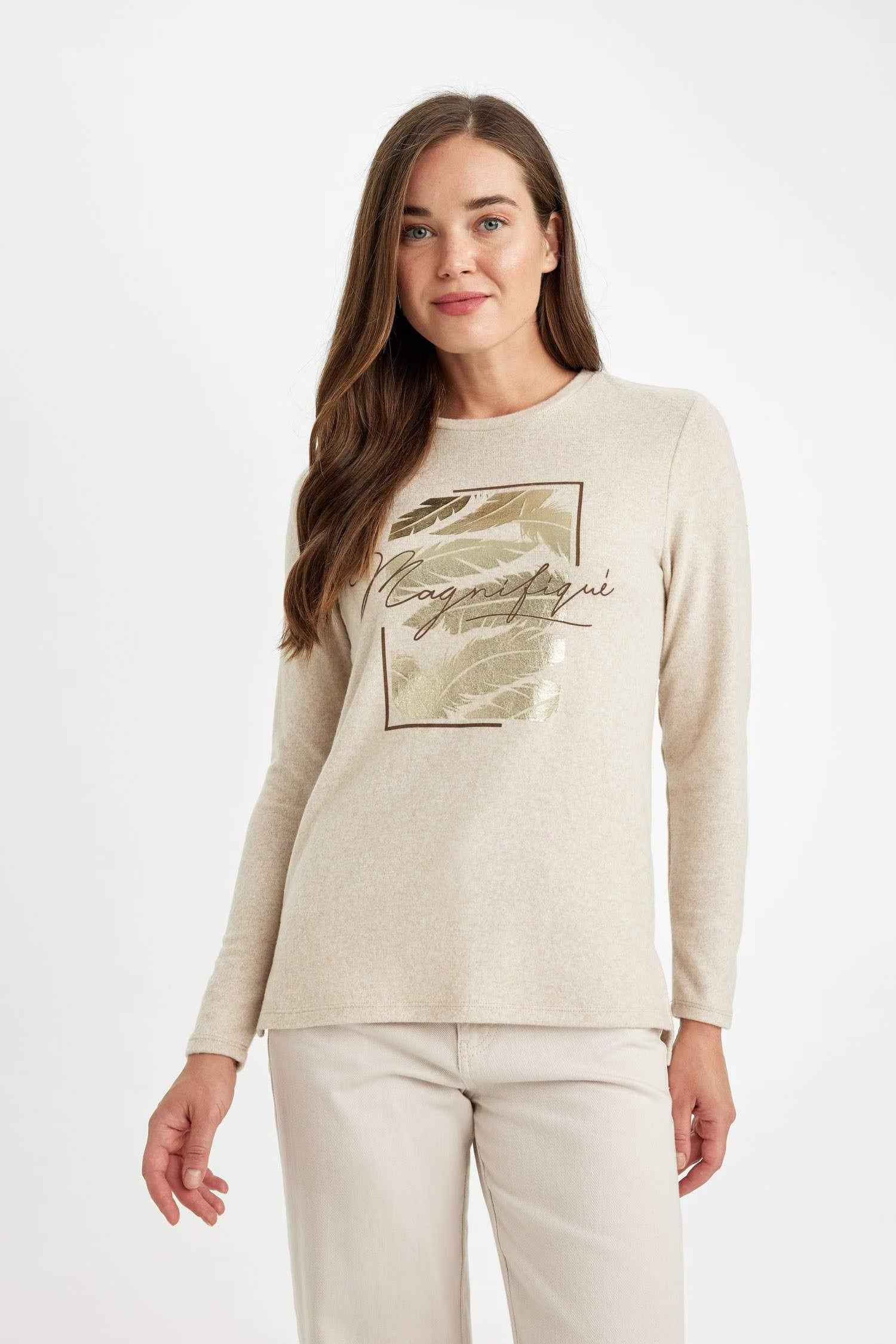 Relax Fit Crew Neck Bright Printed Long Sleeve T-Shirt